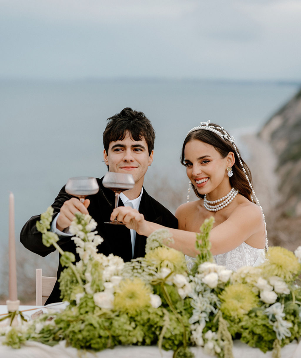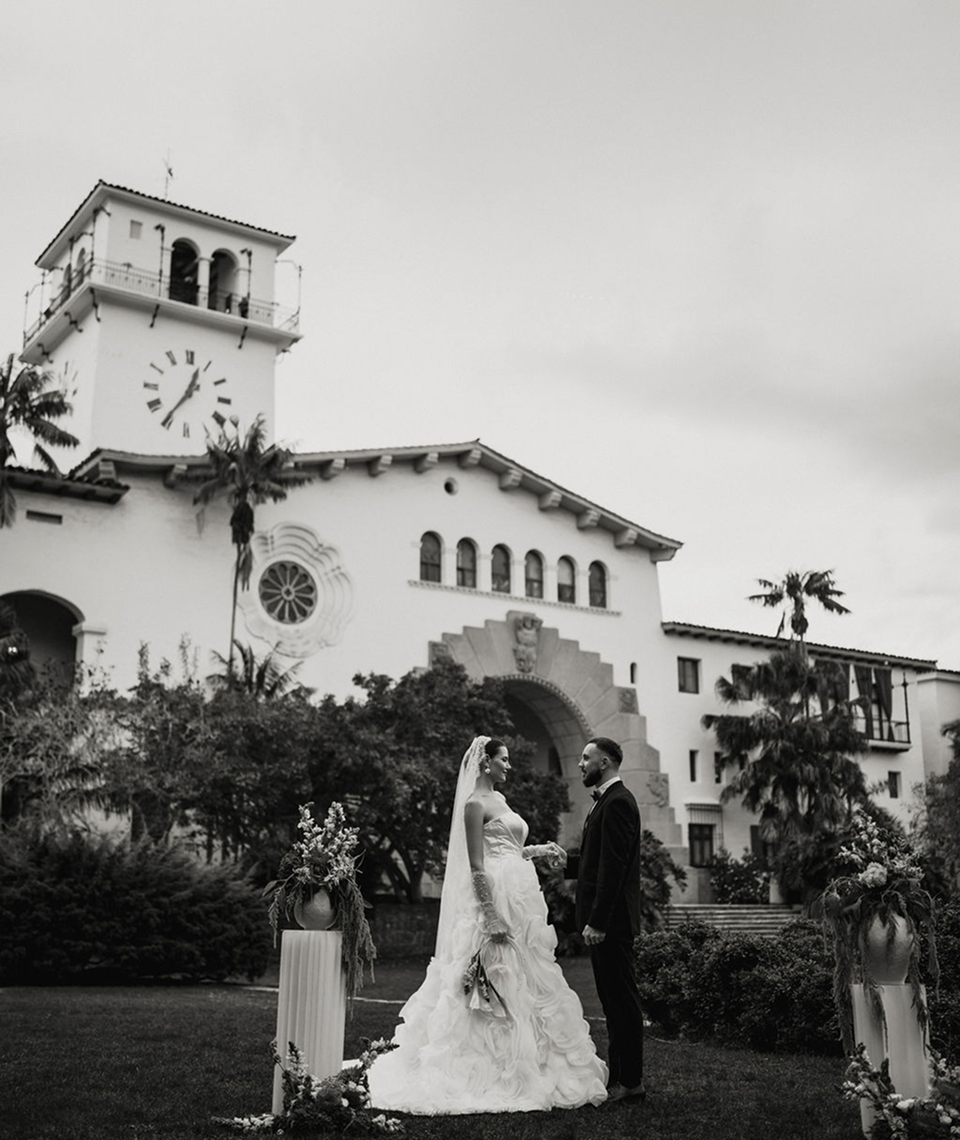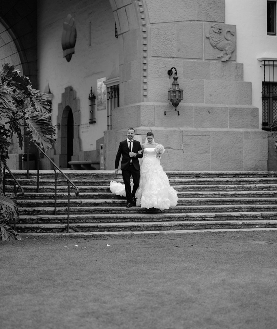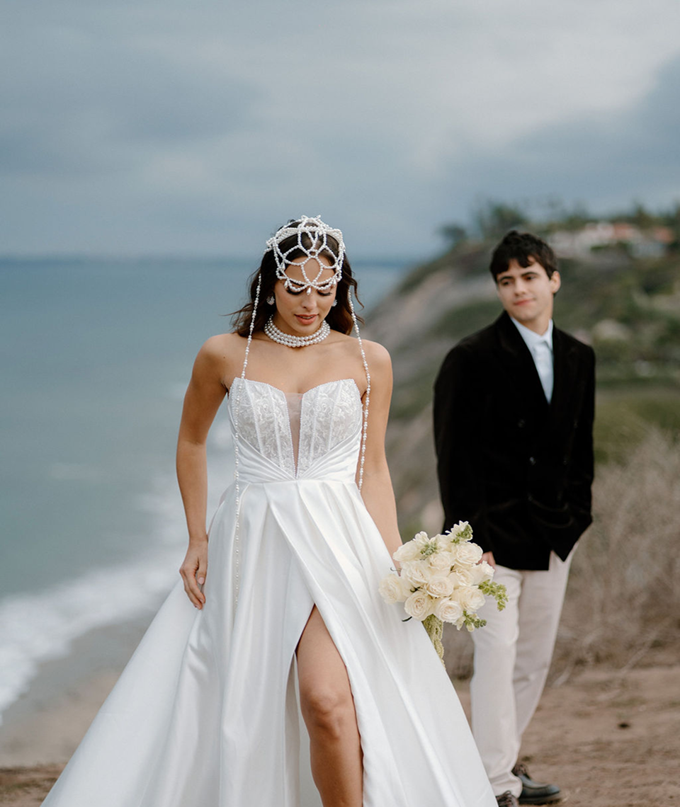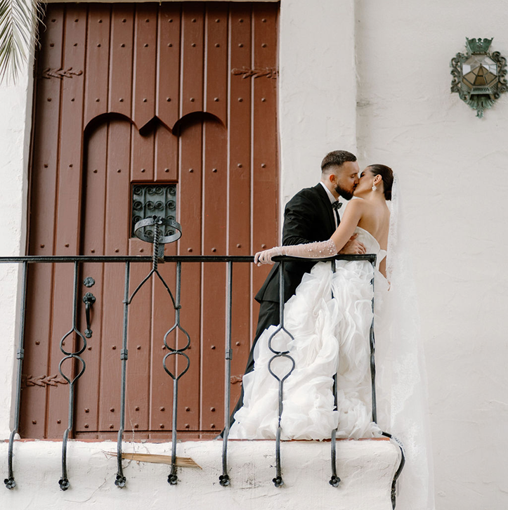 This story was meant to be an editorial shoot. Soft coastal tones.Architectural Spanish details.A sculptural gown with dramatic floral textures. Pearl accents. Calla lilies. Refined minimal florals. The styling was clean, elevated, intentional a modern bridal vision with European depth and California softness.The plan was simple: an editorial session for Amalia and Vitalik a couple long engaged, deeply in love, but postponing their wedding because their families live far away. They kept waiting for the “right time.” But sometimes the right time is created. On the day of the ICON Academy shoot, what was supposed to be a styled editorial turned into something real. Vitalik decided to surprise Amalia.