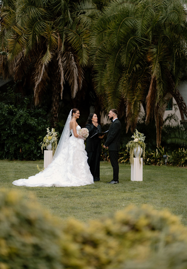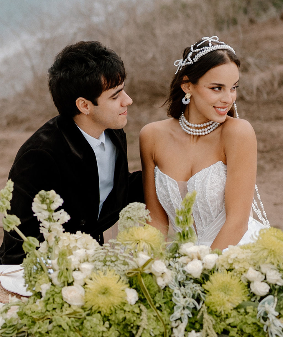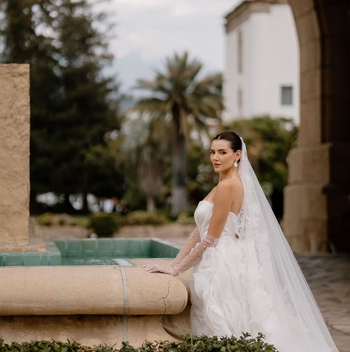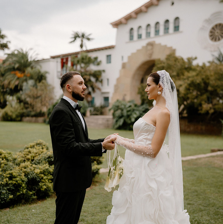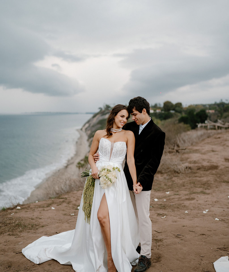 This story was meant to be an editorial shoot. Soft coastal tones.Architectural Spanish details.A sculptural gown with dramatic floral textures. Pearl accents. Calla lilies. Refined minimal florals. The styling was clean, elevated, intentional a modern bridal vision with European depth and California softness.The plan was simple: an editorial session for Amalia and Vitalik a couple long engaged, deeply in love, but postponing their wedding because their families live far away. They kept waiting for the “right time.” But sometimes the right time is created. On the day of the ICON Academy shoot, what was supposed to be a styled editorial turned into something real. Vitalik decided to surprise Amalia.