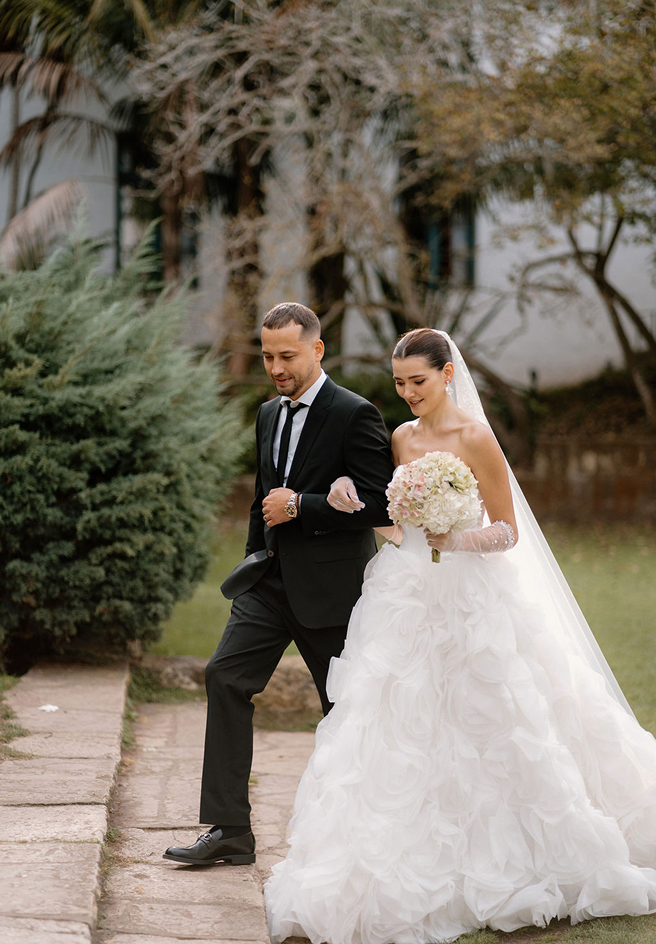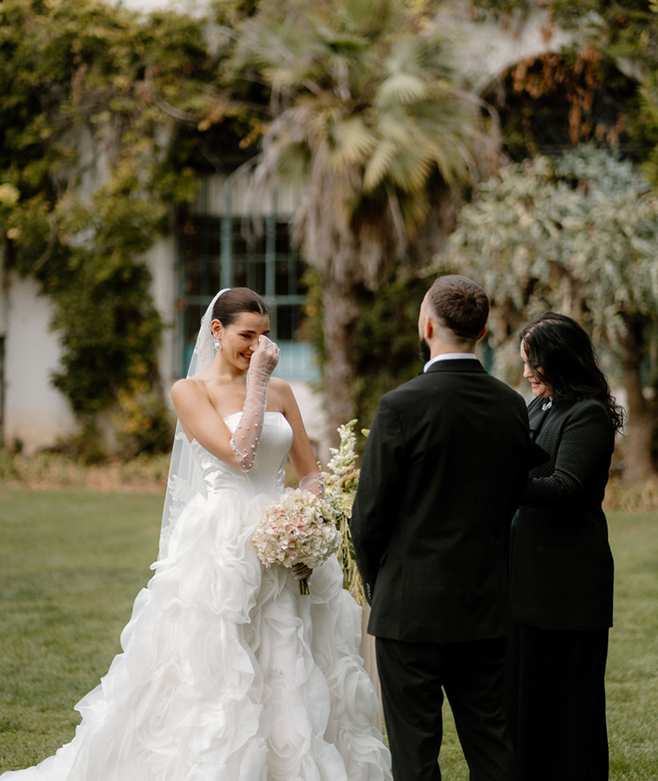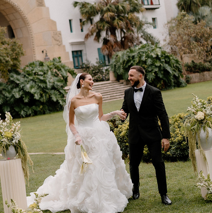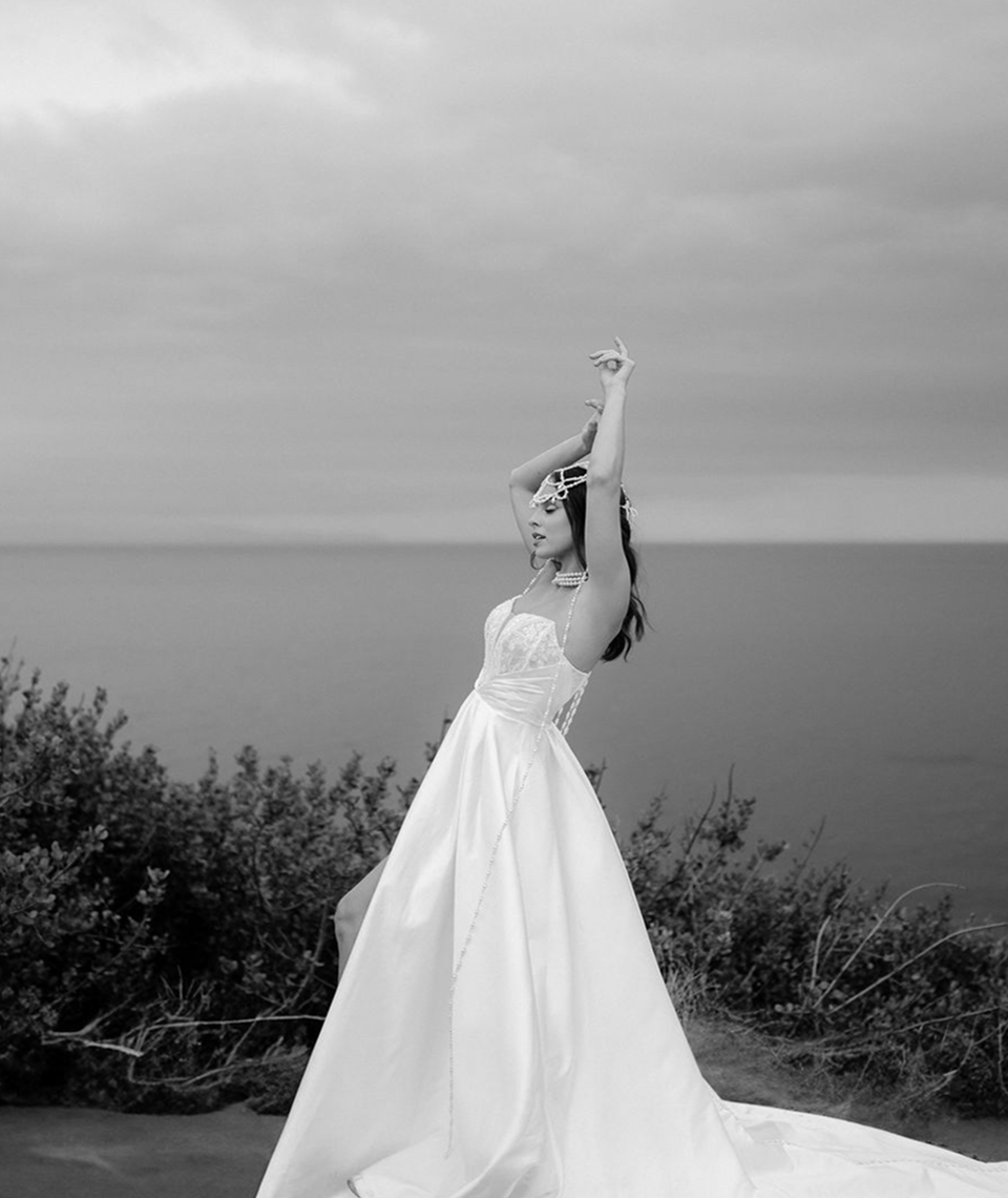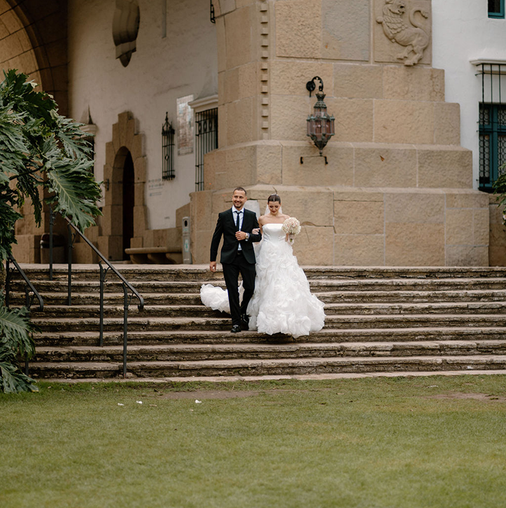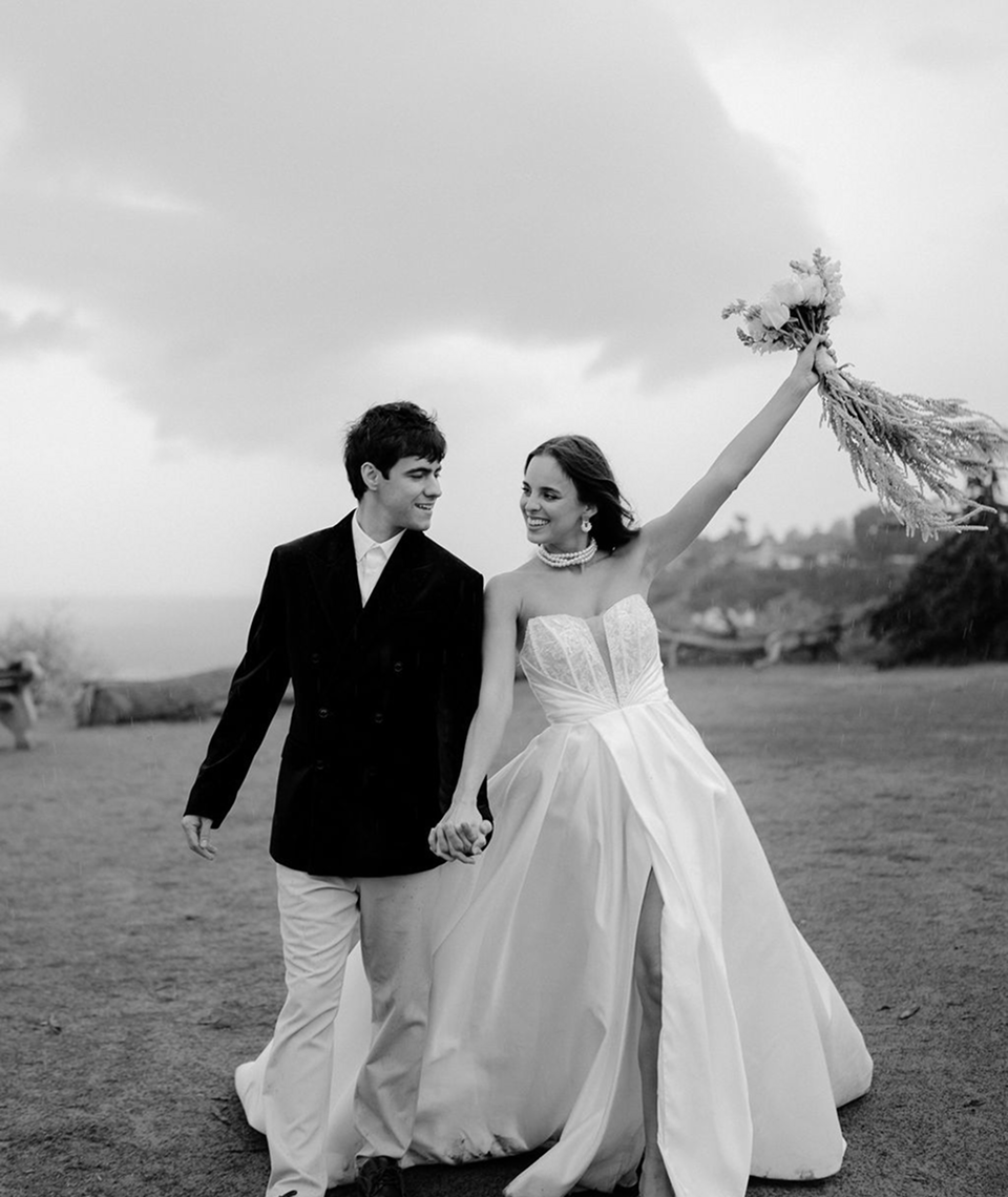 This story was meant to be an editorial shoot. Soft coastal tones.Architectural Spanish details.A sculptural gown with dramatic floral textures. Pearl accents. Calla lilies. Refined minimal florals. The styling was clean, elevated, intentional a modern bridal vision with European depth and California softness.The plan was simple: an editorial session for Amalia and Vitalik a couple long engaged, deeply in love, but postponing their wedding because their families live far away. They kept waiting for the “right time.” But sometimes the right time is created. On the day of the ICON Academy shoot, what was supposed to be a styled editorial turned into something real. Vitalik decided to surprise Amalia.